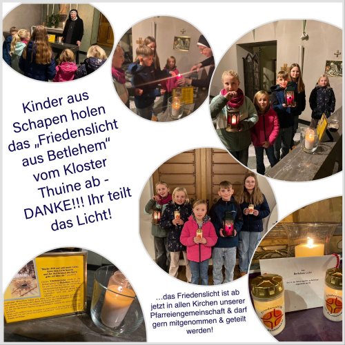 die Familienmesse in Schapen, zu der die Fünftklässler das Friedenslicht aus Thuine geholt hatten