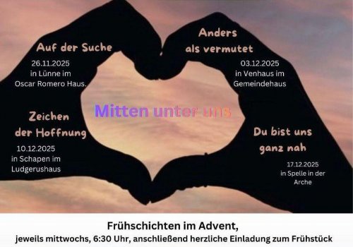 Herzliche Einladung zu den vier Frühschichten vor Weihnachten, die an den letzten vier Mittwochen vor Heiligabend stattfinden.