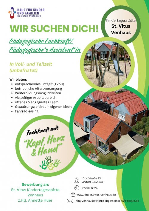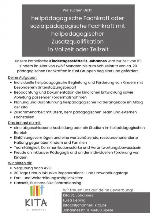 Sollten Sie hier gerade einmal keine aktuelle Ausschreibung finden, lohnt es sich als pädagodische Fach- oder Assistenzkraft dennoch, in unseren vier katholischen Kitas nachzufragen, denn manchmal ergibt sich ganz spontan Personalbedarf...