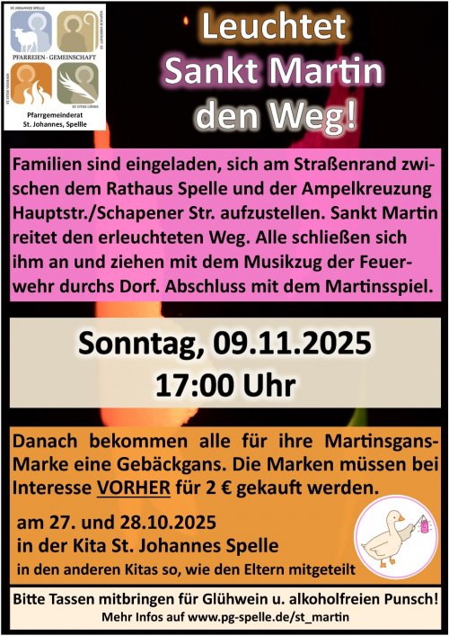 Seit einigen Jahren findet der St. Martinsumzug in Spelle statt, wie auf dem Plakat beschrieben: