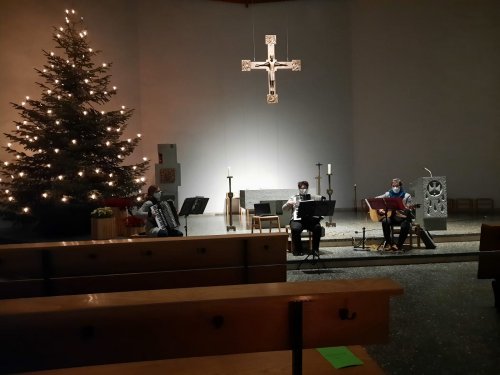 Die Ton- und Bildübertragung machte es möglich, dass im Altenheim bei Neujahrskuchen und Kaffee eine gemütliche Stimmung aufkam. Den einen oder anderen Kirchenbesucher verwunderte die ungewohnte Aktivität in der Kirche, die sich hiermit erklärt.