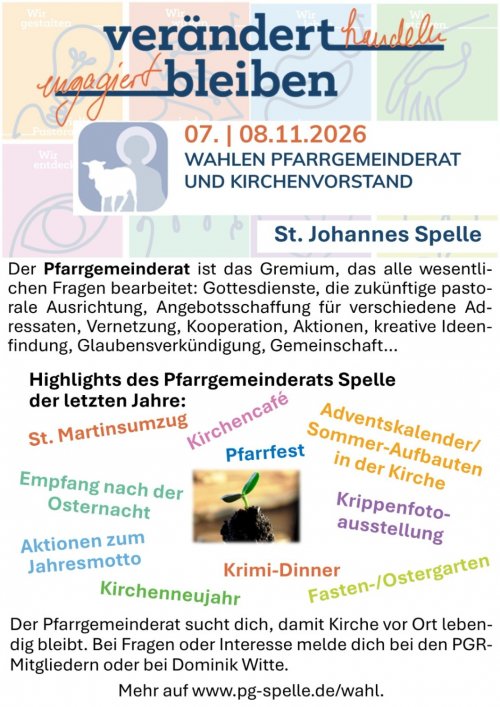 In allen Pfarrgemeinderäten und Kirchenvorständen scheiden mit der Wahl Personen aus und es besteht Bedarf, dass andere Personen nun Verantwortung vor Ort übernehmen, damit unsere Kirchengemeinden verändert bleiben, also auch zukünftig mit und in allen Veränderungen fortbestehen und verändert handeln und engagiert bleiben.
